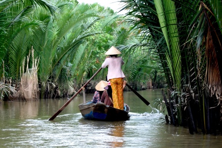 Visite d’une ferme d’apiculture et dégustation de thé au miel ainsi que de fruits exotiques. Navigation dans de petits sampans sur ce canal bordé de palmiers d’eau. Déjeuner à bord. Magnifique navigation par le très étroit canal de Chao Gao en direction de Hô Chi Minh-Ville. Nuit à quai dans le centre-ville de Saigon.