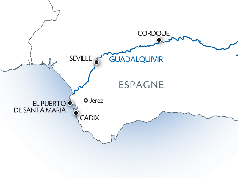 Le matin, excursion incluse : visite guidée d’une bodega et dégustation de vins. Départ à pied avec l’équipe d’animation pour la bodega. Dégustation de 3 vins accompagnés de tapas. Parmi les nombreuses traditions, le vin a de tout temps occupé une place prépondérante dans la culture andalouse. Les conditions climatiques exceptionnelles permettent de produire les vins de l’Appellation d’Origine Jerez-Xérès-Sherry. Après-midi en navigation vers Séville. Profitez d’un moment de convivialité autour d’un verre « d’anis del toro », une boisson provenant de la plante d’anis très courante durant cette période de fête. Vous dégusterez également les fameux Mantecados, avant de découvrir les secrets de leur fabrication.